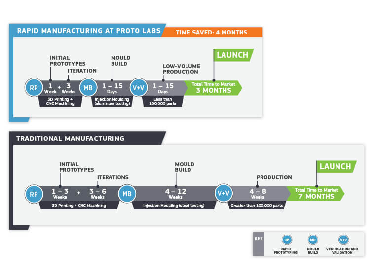 - 在全面生产开始之前,通过实施负担得起的铝模具来降低市场投放的财务风险。