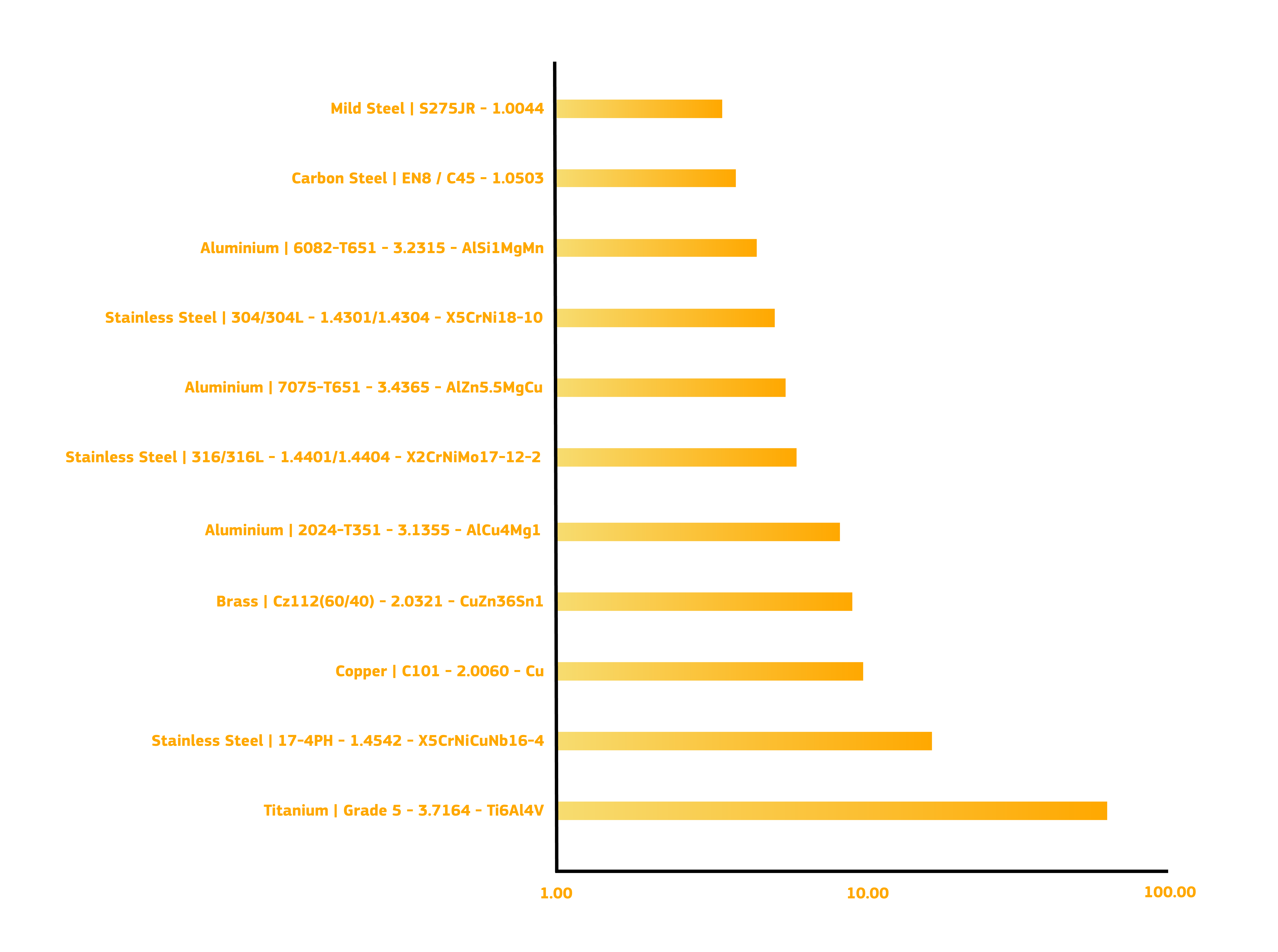 Metalli:银色、银色、青铜色……这是一种可分解性的物质,可分解性的物质,可分解性的物质,可分解性的物质,可分解性的物质,可分解性的物质,可分解性的物质。Il - grafico dei cost相对于Il - metali riserse的成本为:1 - al6082 - al - al6082 - Il - tipo - più comune - al - al6082 - al - al6082 - Il - tipo - più comune) - 1 - sono材料prime const的成本为每公斤più欧元。La partte centrale del grafico mostra i tipi di allumo e di acciaio insidable più speciizati, che contengono componenti di lega costsi。无限大的钛酸盐,其è sorprenentemente abbondante ma difficile da raffinare(其贡献和增加的钛酸盐的含量将会增加,其所有权将会降低)。