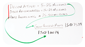 Per le finiture decorative, lo spessore minimo dovrebbe essere compreso tra 5 e 25 micron. Se volete poi colorare il pezzo, raccomandiamo uno spessore tra 15 e 25 micron.