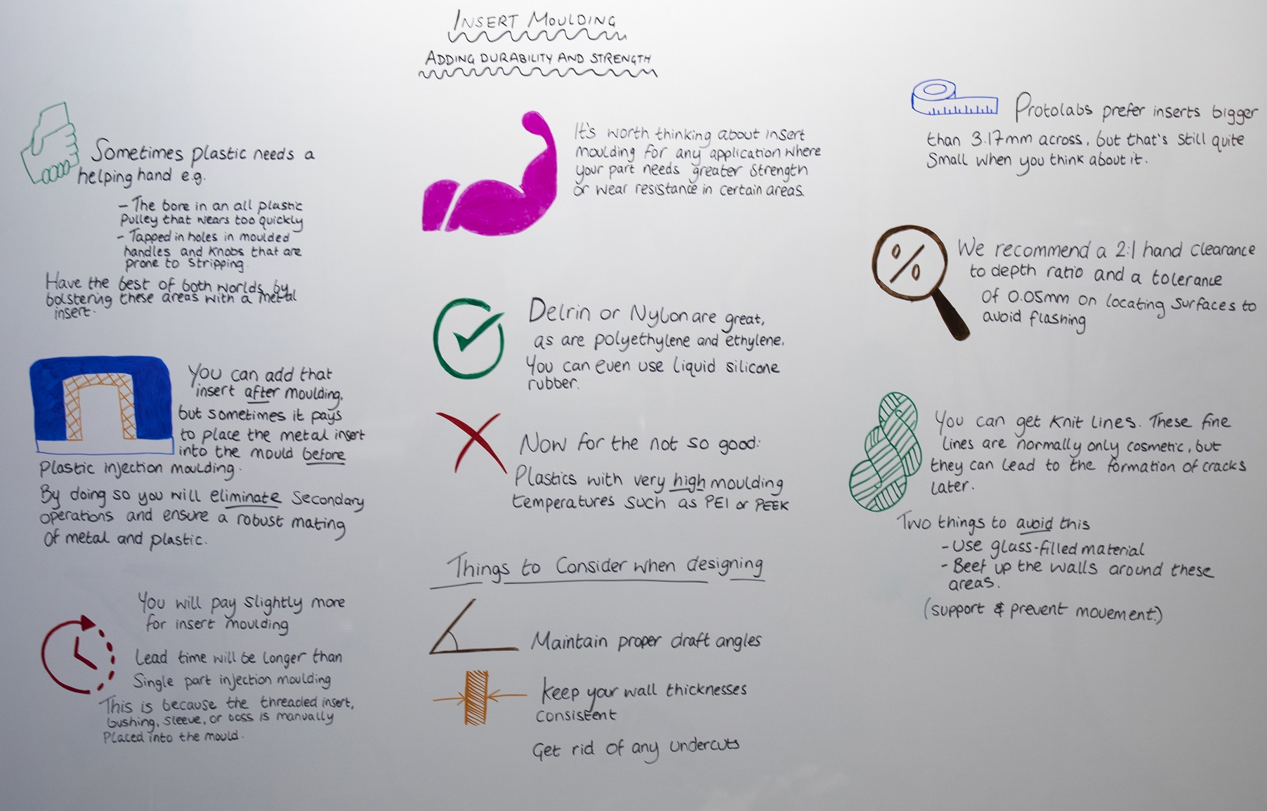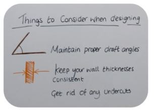 Quando si tratta di progettare il pezzo, dovrete valutare quasi tutti gli aspetti che vengono presi in considerazione per qualsiasi altro componente stampato a iniezione. Prevedete angoli di spoglia adeguati, lo spessore delle pareti uniforme, eliminate i sottosquadri: sono i soliti consigli di cui abbiamo già parlato nei nostri precedenti video della serie “Insight- Masterclass”.