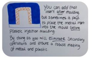 Potete ovviamente aggiungere l’inserto dopo lo stampaggio ma a volte conviene inserirlo nello stampo prima di iniettare la plastica. In questo modo, eliminerete le operazioni secondarie e assicurerete un solido accoppiamento di metallo e plastica.