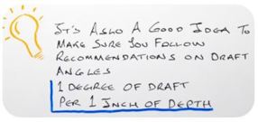 Vale anche la pena seguire le raccomandazioni sugli angoli di spoglia: 1 grado di spoglia ogni 25 mm di profondità è una buona regola generale.