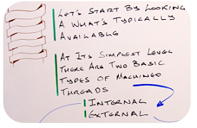 Ci sono due tipi di filettature base realizzate a macchina: le filettature interne e le filettature esterne.