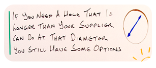 Torniamo ora alla profondità di un foro filettato. Se il foro desiderato ha una lunghezza maggiore rispetto a quella praticabile dal fornitore al diametro richiesto, non tutto è perduto.