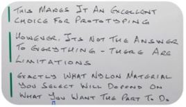Per cui rappresenta una scelta eccellente per la prototipazione di prodotti che possono essere realizzati mediante lo stampaggio a iniezione o persino come alternativa a tale processo sotto forma di produzione in volumi ridotti.