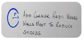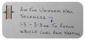Ecco il mio elenco degli altri punti da tenere a mente: Aggiungete raggi di curvatura nei punti d'incontro delle pareti, per ridurre le sollecitazioni. Cercate di progettare pareti dallo spessore uniforme.