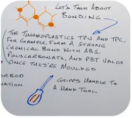 Solitamente, vogliamo che il sovrastampo abbia un aspetto estetico gradevole e sia resistente, ma spesso deve anche fungere da buona superficie di presa. Il sovrastampaggio viene spesso usato per applicare un manico di presa ad un utensile manuale, sia esso un trapano o uno strumento chirurgico, per cui occorre ottenere un pezzo la cui goffratura sia di qualità. In questi casi, il TPU applicato sull'ABS rappresenta una scelta eccellente.