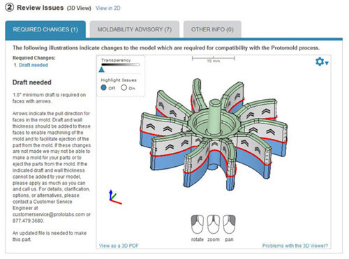 Uno degli strumenti più preziosi disponibili presso Protolabs è la nostra analisi gratuita di realizzabilità (DFM) fornita per ogni modello 3D漫画sul nostro sito。在poche矿中,在quelle sezioni中,riceverete un preventivo che evidenzia sezioni dettagliate del modello che richiendo angoli di spoglia和建议persino modifiche per migliorare l'angolo di spoglia。Questo servizio funge da buon controllo della qualità per evitare problem di stampabilità futuri。
