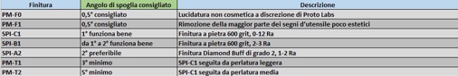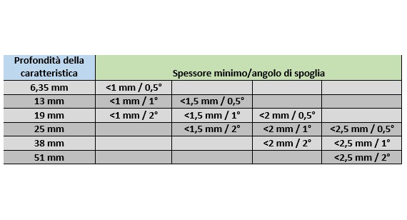 - Si coniglia UN angolo di spoglia di 0,5 gradi su tutte le face vertical;