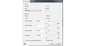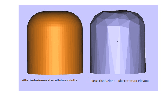 我的名字,我的名字,我的名字,我的名字。Poiché nei文件。stl la表面del pezzo è rappresentata中间的一个空间的三角,一个risoluzione bassa rischia di triangoli的一个空间的介绍。Ciò potrebbe generare un file con amfacecetature visibili anche sul prototipo stesso。Nella maggior parte dei sistemi CAD, le impostazioni di risoluzione "Alta" o "Buona" consentono solitamente la creazione di file di qualità elevata。