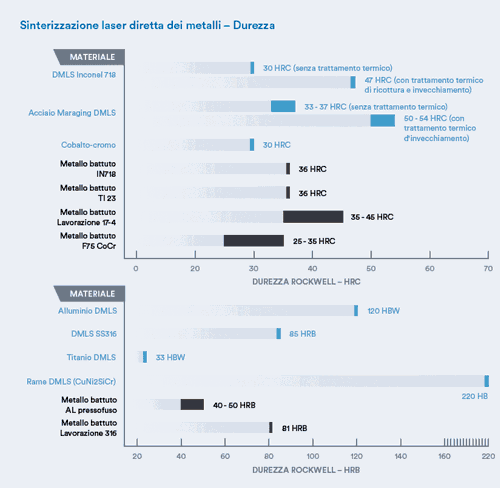 Certa varianza di proprietà quando misurata lungo diversi assi。Per un to visivo delle proprietà dei materiali DMLS, vedereGrafico 1Per la resistenza真主安拉trzione,Grafico 2Per l'allungamento eGrafico 3Per la durezza。