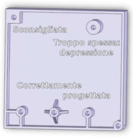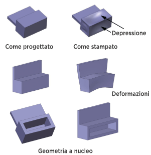 - Le sezioni spesse possono causare vuoti e depressioni nel pezzo.