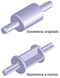 Eliminando le pareti spesse si ottiene il nucleo del pezzo. La funzionalità rimane invariata in un pezzo correttamente stampato.