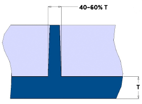 Per impedire la formazione di depressioni, le nervature non dovrebbero superare il 60% dello spessore della parete.