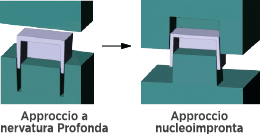 A livello di progettazione, se possibile è preferibile utilizzare la combinazione nucleoimpronta al posto delle nervature, poiché consente di ottenere pareti di spessore costante piuttosto che pareti con una base spessa. Facilita inoltre la creazione di stampi con una finitura di superficie migliore e la consegna di pezzi di maggiore qualità a velocità più elevata.