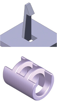 Gli elementi scorrevoli园子una scelta ideale e possono essere creati in uno stampo a estrazione diretta. Richiedono un angolo di spoglia di 3°, ma consentono di ottenere un notevole risparmio di tempo e denaro sugli azionamenti laterali.