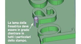 - Con testi di dimensioni inferiori, una profondità pari a 0,3 mm spesso consente di ridurre i costi di fresatura e migliorare l’espulsione.