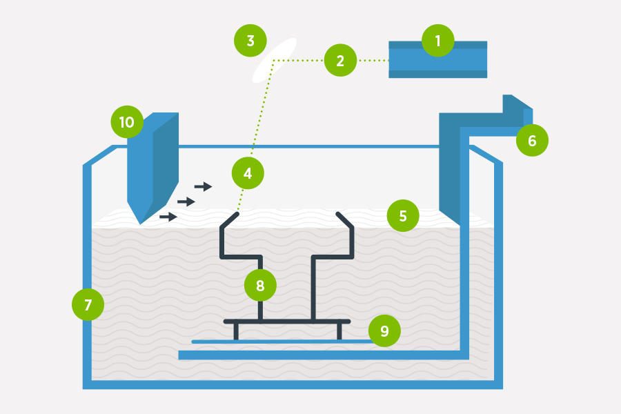 I componenti di una stampante 3D SLA compprendono: unità激光(1),激光筋膜激光(2),光谱/动力系统,筋膜指南(3),focalizato和diretto筋膜(4),树脂表面(5),ascensur (6), vasca (7), modelello del pezzo (8), piattaforma di costruzione (9), lama di ricopertura(10)。