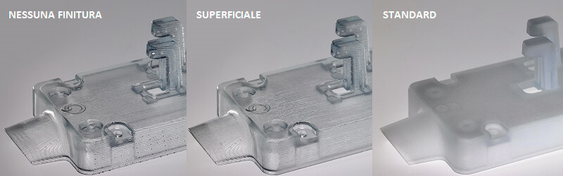 | NESSUNA FINITURA | I testimoni delle strutture di supporto che toccavano il modello rimangono visibili sul fondo del pezzo. |
