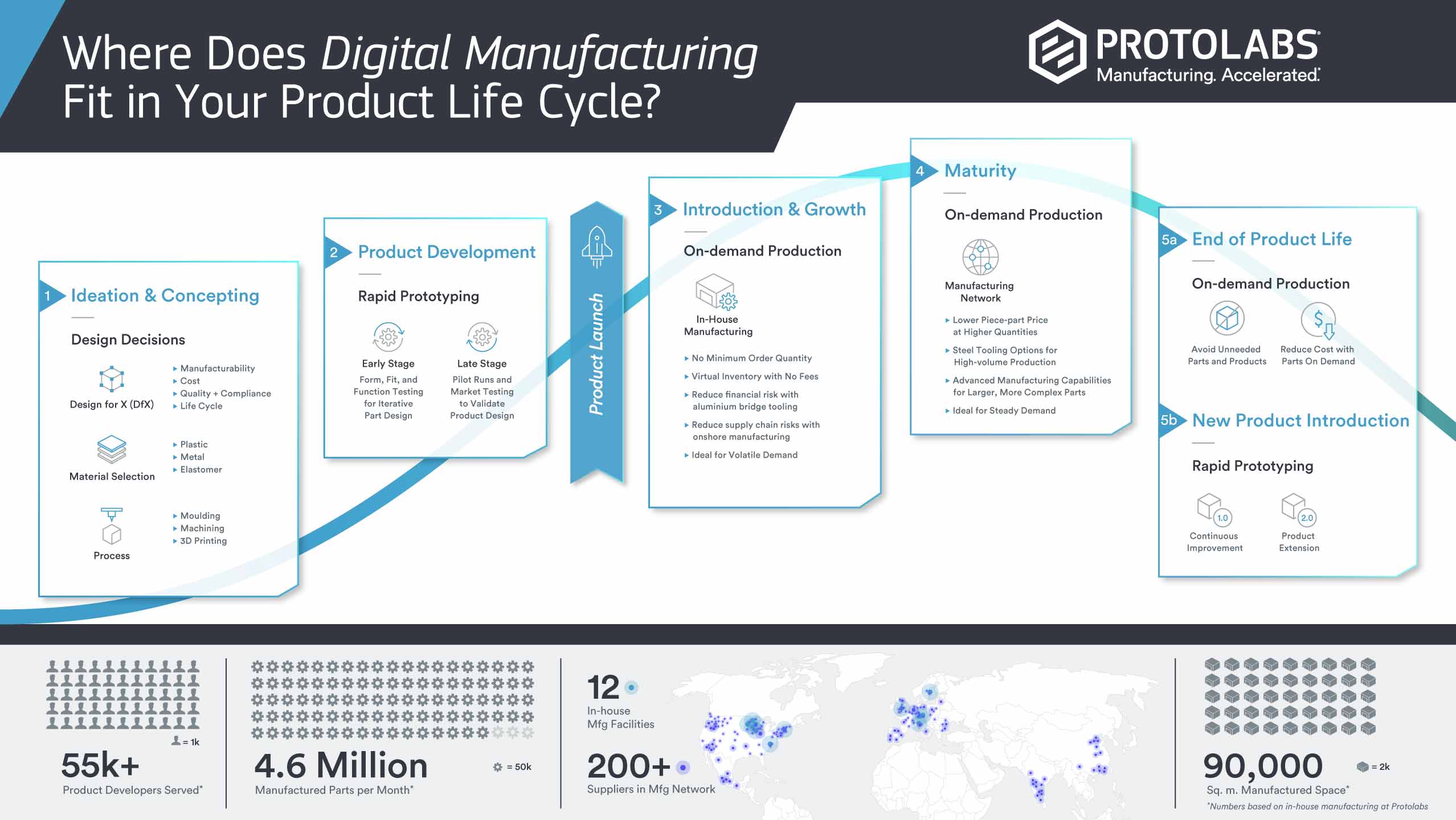 Wprowadzaj pomysły na rynek dzięki najszybszej i najbardziej kompleksowej usłudze cyfrowej produkcji na świecie. Uzyskaj dostęp do cyfrowych fabryk Protolabs w celu przyspieszenia produkcji wysokiej jakości części w połączeniu z naszą globalną siecią dostaw wspieraną przez firmęHubsdla części o cenach hurtowych, ściślejszych tolerancjach i większej złożoności. Wynik? Wiedza w zakresie cyfrowej produkcji i inżynierii, która spełnia wszystkie potrzeby klientów, od prototypowania po produkcję.