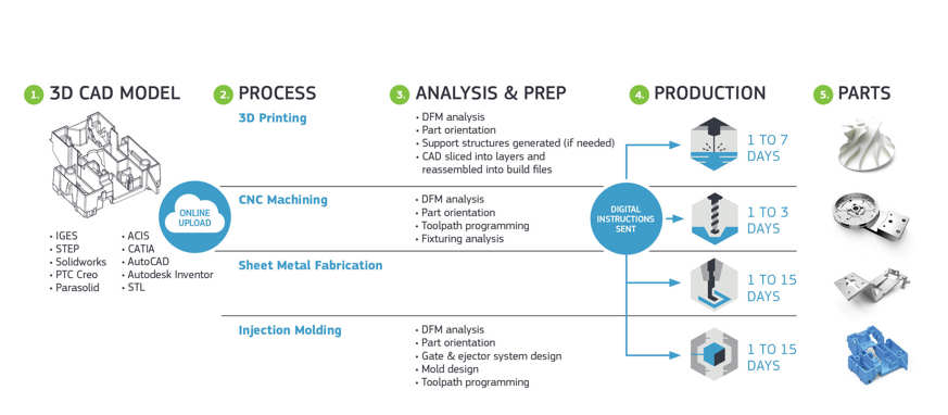 在评估合同制造商方面,数字合作伙伴是那些能够提供敏捷响应的合作伙伴。在一个完全数字化的过程中,准确的报价可以在几个小时内提供,如果不是立即,制造通常在几天内完成,有时甚至是同一天。