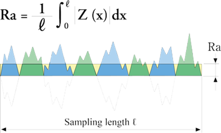 最广泛使用的表面粗糙度测量是Ra,或粗糙度轮廓和平均线之间的平均粗糙度。Ra是理想表面平面的偏差,以微英寸或微米测量。Ra单位越大,表面就越粗糙。例如,通常选择性激光烧结和Multi Jet Fusion 3D打印表面被比作一块方糖或一条蓝色牛仔裤。