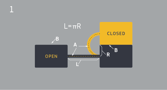 公式L=πR是铰链长度与放置位置的理想关系。这使得铰链在关闭位置时形成半圆形。遵循这个公式将沿着铰链均匀分布应力,并将附着点的应力降至最低。下图展示了铰链长度和位置之间的关系。