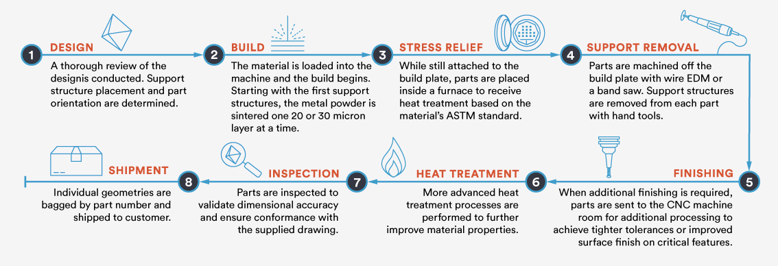 金属部件的增材制造似乎很复杂,但我们经验丰富的3D打印应用工程师将与您合作的每一步。在零件送到机器进行打印之前,我们总是进行彻底的咨询性设计审查。这不仅确保了正确的设计,而且还为我们的生产团队提供了优化构建方向和支撑结构放置所需的信息,以实现最高质量的部件。如果需要额外的后处理来满足您的应用程序的制造要求,项目主管将与您合作,在流程的每个步骤提供更新。