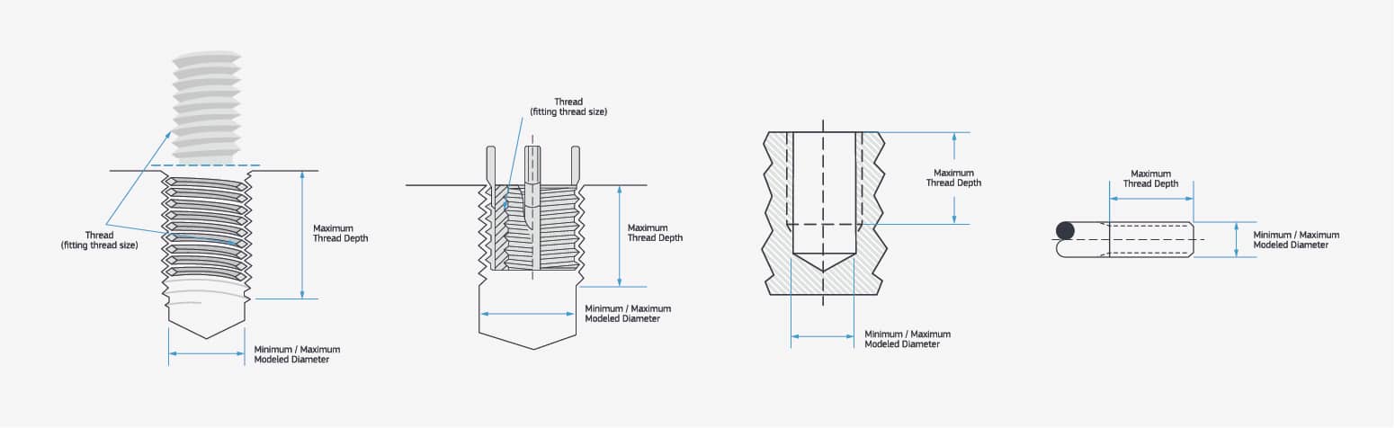添加螺纹的特性加工零件也是一个挑战。内螺纹可以用丝锥来制造,丝锥是一种类似于螺栓或紧固件的切削工具,会在某一点上拧入工件,或者是一种被称为螺纹磨的特殊刀具。无论哪种方式,深螺纹都很难,原因和深孔很难一样,即切屑排出,在螺纹铣削的情况下,径向切削压力。在大多数情况下,两倍直径的螺纹深度可以提供足够的强度,而且生产成本更低。如果这是不够的,考虑使用插入,如螺旋线圈或关键插入,以加强螺纹的完整性,特别是在塑料数控部分.最后,用“H”限制指定螺纹公差,最常见的是H2或H3。后者有一个更严格的容忍,然而,因此是有点昂贵的生产,所以最好的赌注是呼吁H2除关键应用程序。