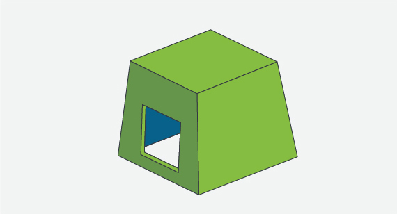我们已经展示了移除井架可以消除侧向作用的必要性,但也有一些情况下,可以通过滑动关断产生完全包围的通孔(例如窗口)。这是通过增加墙壁的draft量来实现的,以允许窗口部分地由两个模具的每一半形成。